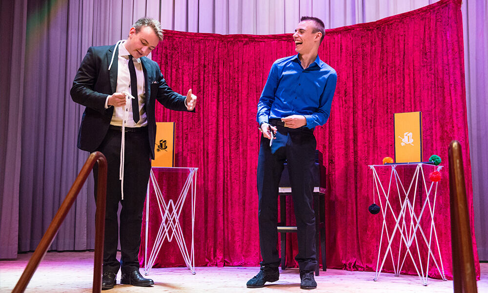 Das Konzept: Bei der Bühnenshow verzaubern die Zauberer frontal vor den Zuschauern und spielen ihre Show.